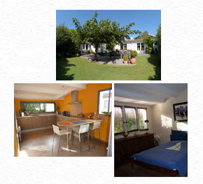 De 1 à 8 personnes.De 1 200 à 3 000 euros la semaine.Maison de charme rénovée avec goût, située entre le centre et la plage (des Anneries), au calme, au milieu de la verdure et à l’abri des regards. Maison de plain-pied avec studio indépendant. Triple exposition (est, sud et ouest) sur un terrain de 600 m2 avec jardin paysager et terrasse en bois. Vaste séjour avec parquet (42 m2) exposé plein sud et communiquant avec la terrasse. Quatre chambres (dont une avec un lit de 1,60 m et une avec un lit de 1,40 m), trois salles d’eau, trois w.c. séparés. Cuisine contemporaine et lumineuse entièrement équipée (15 m2). Chauffage électrique (climatisation réversible). Plancha à gaz dans une cour fleurie communiquant avec le jardin. Table et sièges extérieurs. Chaises longues. Douche extérieure. Local vélo indépendant. Place de stationnement privée. EquipementMaison toute équipée, gros et petit électro-ménager. Lave-vaisselle - plaque vitrocéramique - four électrique - micro-ondes – 2 réfrigérateurs - congélateur – robot - grille-pain - hotte aspirante - cafetière Nespresso - cafetière électrique - bouilloire - carafe Brita. Machine à laver - sèche–linge. Séchoir à cheveux - fer à repasser. Télévision écran plat LCD, lecteur DVD. Connexion Internet, Wi-fi. Draps, couettes et housses de couettes fournis, linge de toilette, torchons et essuie-mains, épicerie. Pour les enfants en bas âge, lit-parapluie avec draps et couette, chaise haute, baignoire bébé et accessoires sont disponibles. Tarifs pour 2016 :